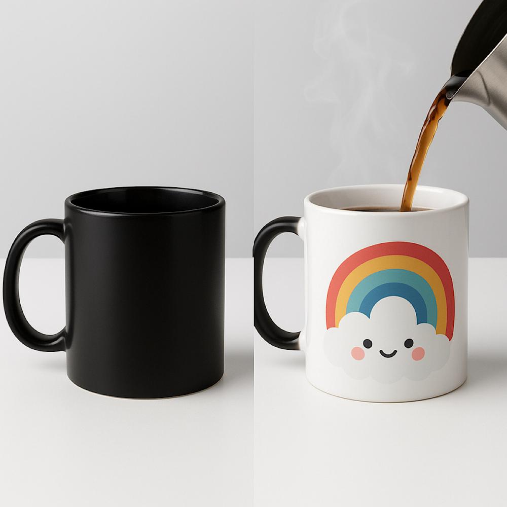✔️ تجربة مدهشة: شاهد كيف يتغير الكوب أمام عينيك من أسود داكن إلى أبيض ناصع مع كل رشفة من قهوتك أو شايك.