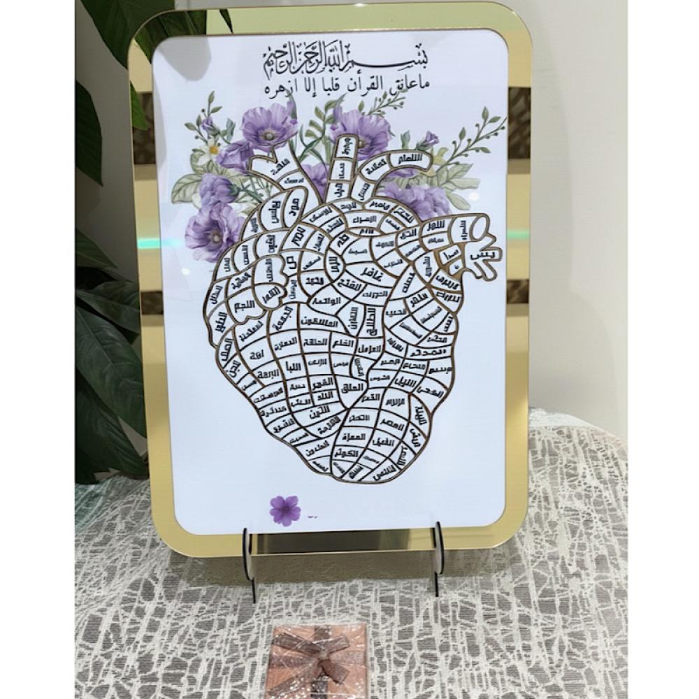 لوح تحفيزي لحفظ وختم القران (شكل قلب) مخصص بالاسم بمقاس A3. وسيلة تعليمية مخصصة لكل قارئ وحافظ لكتاب الله لتشجيعه على المتابعة اليومية والإنجاز.